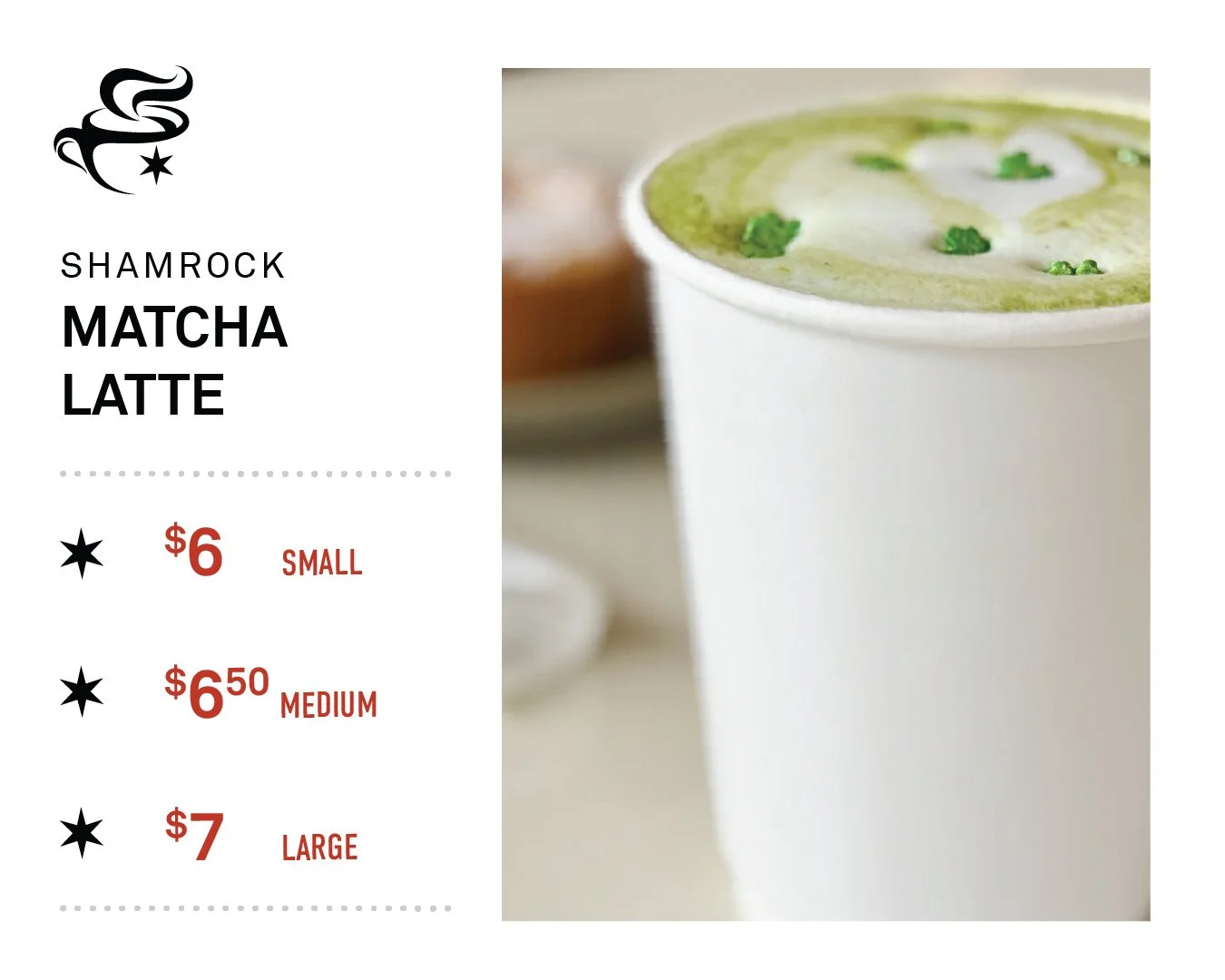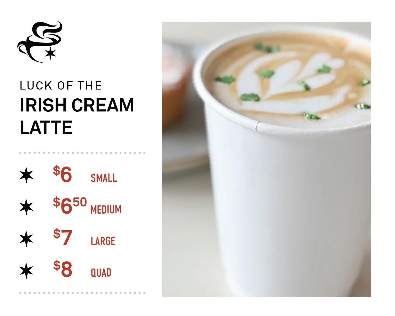 Espresso, Irish Cream Syrup, Vanilla Syrup, Milk of Choice