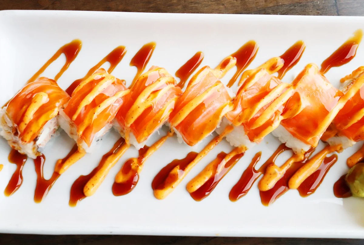 Crab Meat • Salmon • Avocado • Cream Cheese • Spicy Mayo • Eel Sauce